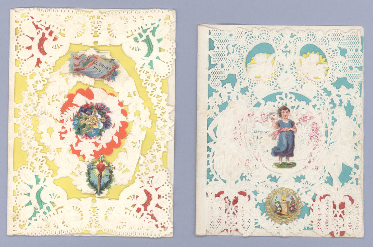 Signing up with the 51st Regiment of Massachusetts Volunteers, Whitney went off to fight in the Civil War in 1862. Just prior to this in 1858, his brother Sumner and his wife, Lura Clark Whitney, had begun their own valentine-making venture. Sumner was soon joined by another brother, Edward. Their business was located in Worcester, just like Howland's, and was operating as Whitney Bros.