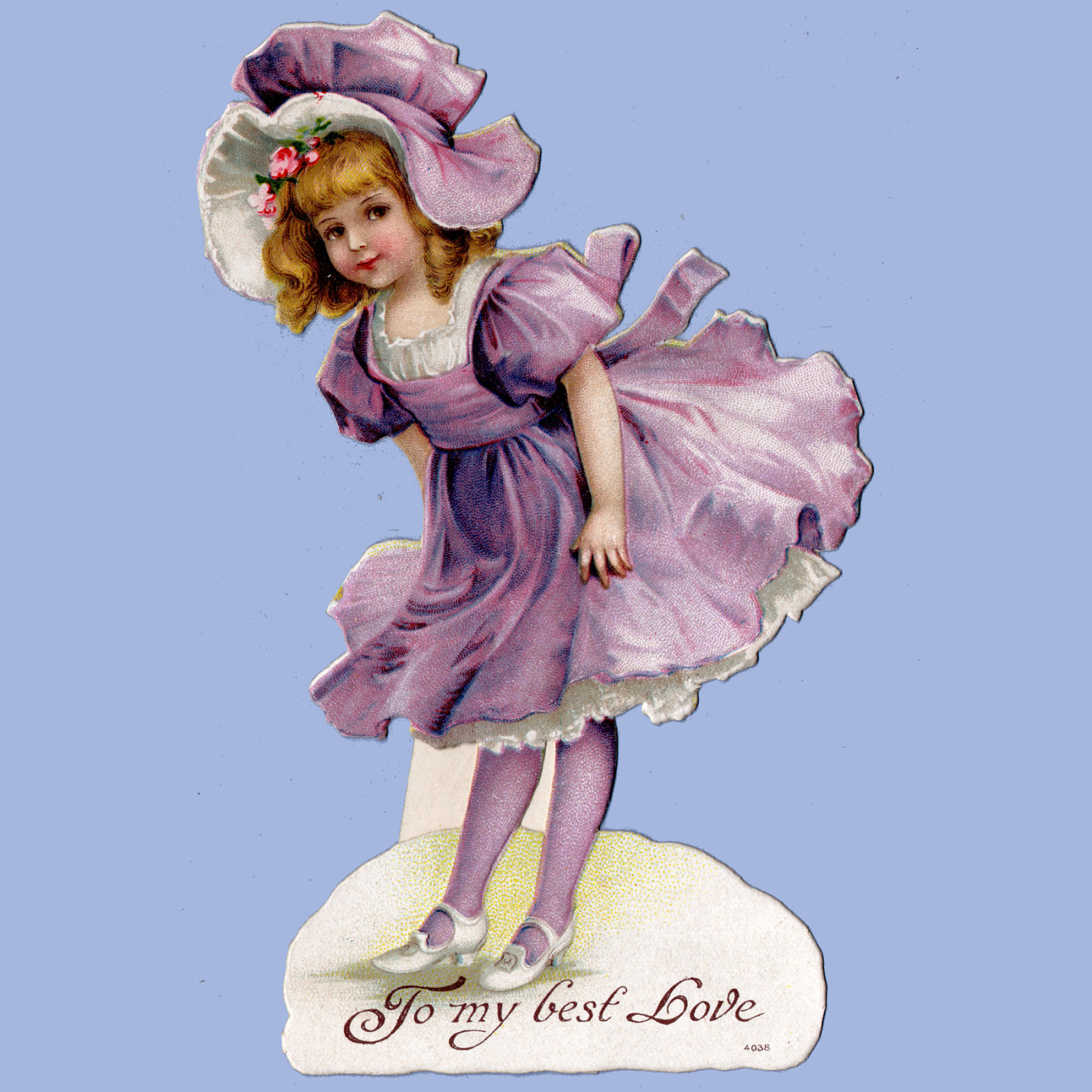 By 1898 she was in the employ of International Art Publishing Co. It is for them that many of her most sought after postcards were created. Like Frances Brundage, key to identifying her work on die-cut greeting cards is knowing her signed work on postcards. Many of the characters, or variations of them, and even some of the complete scenes portrayed on postcards appear again and again on the die-cuts used in standing fold-outs, dimensional pull-downs, or enjoyed just on their own. There are somewhere over 3000 known different signed postcards by Clapsaddle.